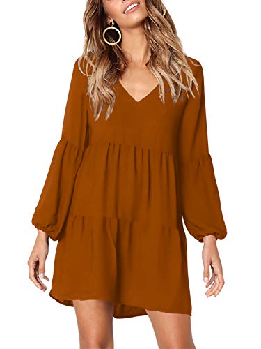 Amoretu Women Summer Tunic Dress V Neck Casual Loose Flowy Swing Shift Dresses