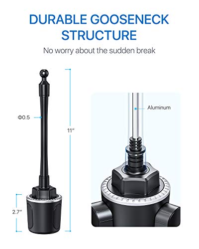 MORE DURABLE THAN EVER: Beneath the surface of the gooseneck is actually the aluminium strip with the diameter of 0.24 in. Soft but durable. Thickened specifically on the connection point to the holder and the cup base, thus no need to worry about the sudden break down in the middle of your driving even in extreme environments.