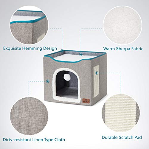 Bedsure Cat Beds for Indoor Cats – Large Cat Cave for Pet Cat House with Fluffy Ball Hanging and Scratch Pad, Foldable…