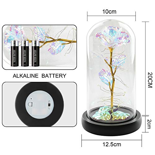 🎁LED Rose: The Rose in glass dome is wrapped around an LED Strip light, Powered by 3 AAA power(not included),led strip light bright warm white lighting.LED rose light can use in daytime and nighttime for home room decorations or create romantic atmosphere, Led glass rose is a symbol of appreciation, best wishes, forever love, passionate and romantics.