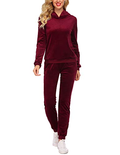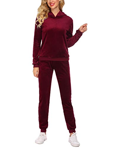 HOTOUCH Women’s Sweatsuit Set Velour Long Sleeve Hoodie and Pants Sport Sweat Suits 2 Piece Tracksuits Outfits S-XXXL