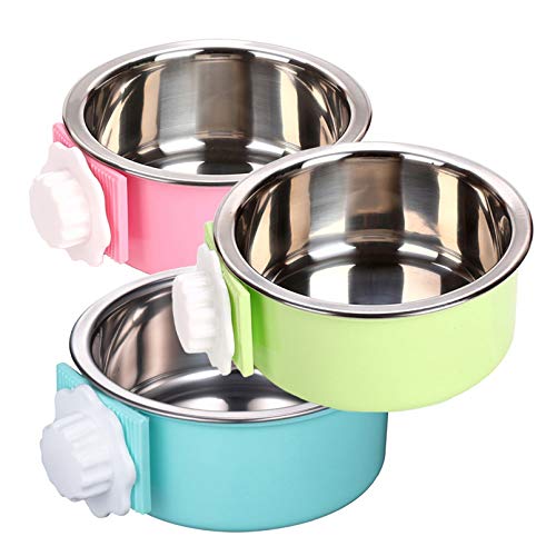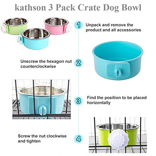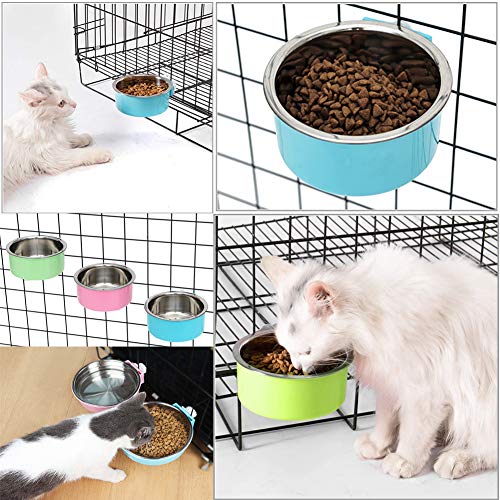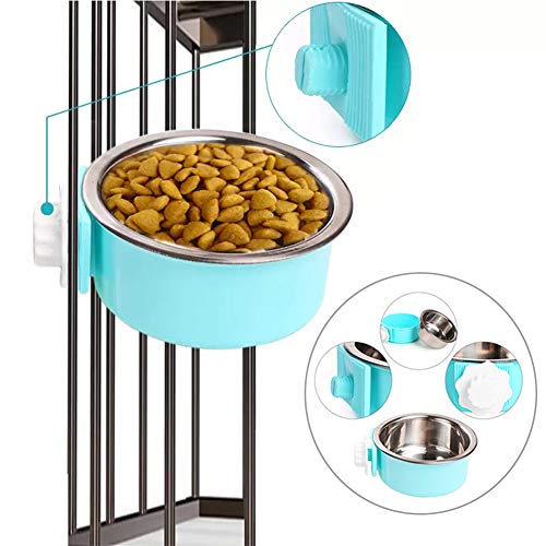 kathson Crate Dog Bowl, Removable Stainless Steel Hanging Pet Cage Bowl Food & Water Feeder Coop Cup for Cat, Puppy…
