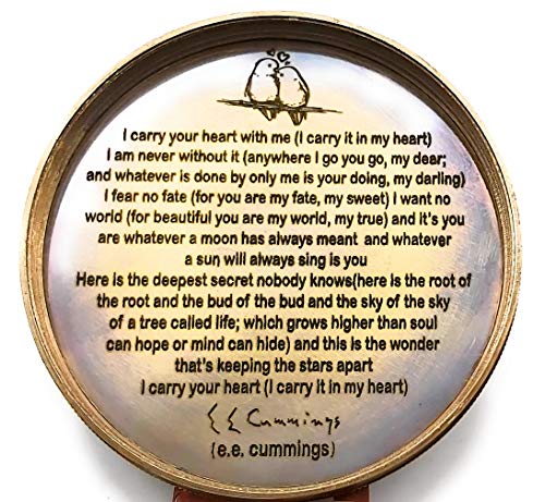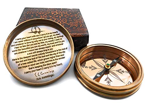 A Beautiful Handcrafted Antique look working compass, E E Cummings compass life is Beautiful Engraved compass with leather case