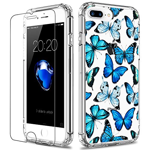 LUHOURI iPhone 8 Plus/7 Plus Case with Screen Protector,Clear Cover with Fashion Cute Designs for Women Girls,Slim Fit…