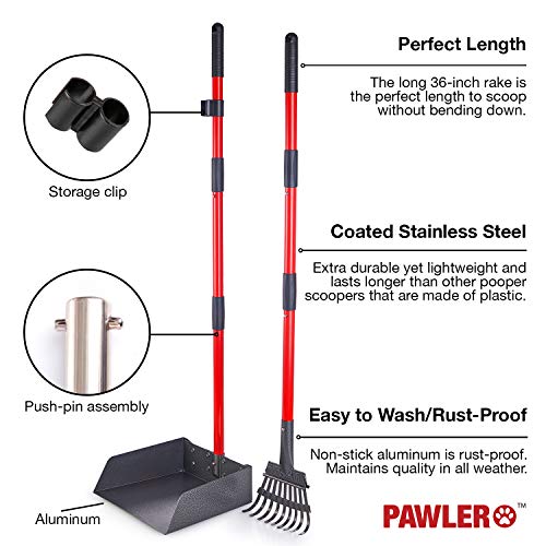Pawler Dog Pooper Scooper for Large Dogs, Small & Medium Dogs – Heavy-Duty, Metal and Aluminum Poop Scoop Set with Rake…
