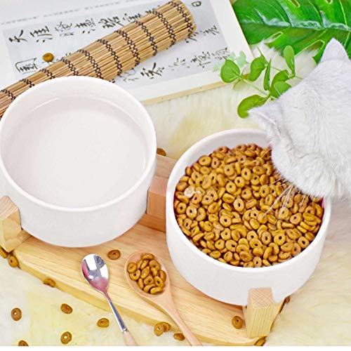 【🐶NON SLIP WOOD STAND🐶】 – The wood stand on the dog bowls stopping the bowls from sliding around, and they can nudge the food around without the bowls being pushed on to the floor. The bowl has a good grip that keeps the playful cat from moving the bowl easily.