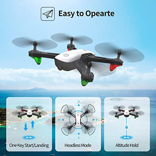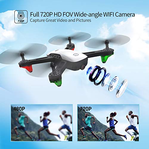 HD Camera & WiFi FPV Drone: Built-in 720P HD Camera with FOV 90° adjustable angle, FPV Real-Time transmission, you are able to see real time first-person-view on the App. The video clips are automatically saved to the Micro SD card. You edit HD footage and directly upload it to social media from your iPhone or iPad.