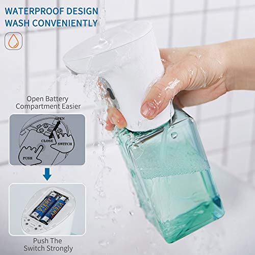 【CONTACTLESS AND HYGIENIC】: Baban automatic soap dispenser Touchless has the technoligy of infrared sensor. There is a switch at the top. Click the green button to turn it on, and you can get the bubble if you extend your hand. The red button means that it turns off. It automatically induces foam that is simple, fun, and hygienic and allows children to wash their hands frequently.