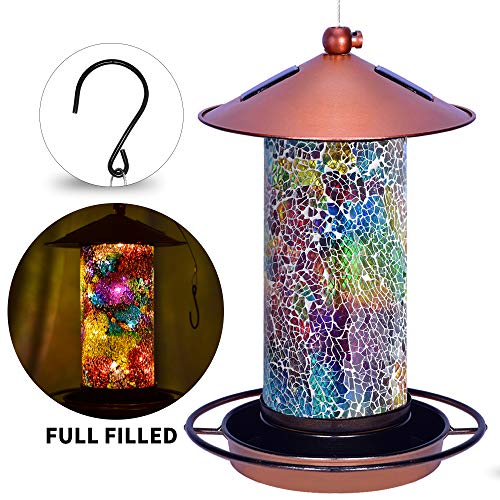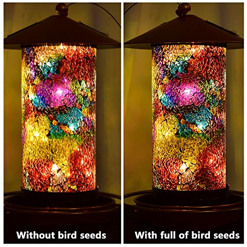 Solar Bird Feeder for Outside – Mosaic Copper Outdoor Hanging Lantern, Solar Powered Hanging Birdfeeder with Hook for…