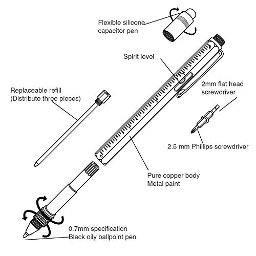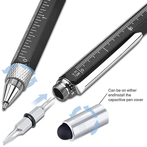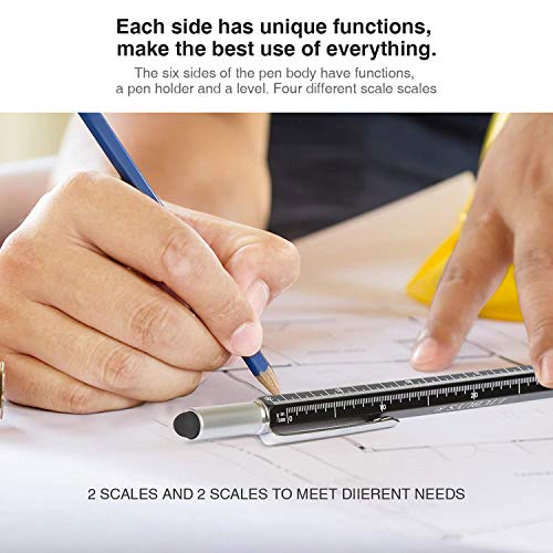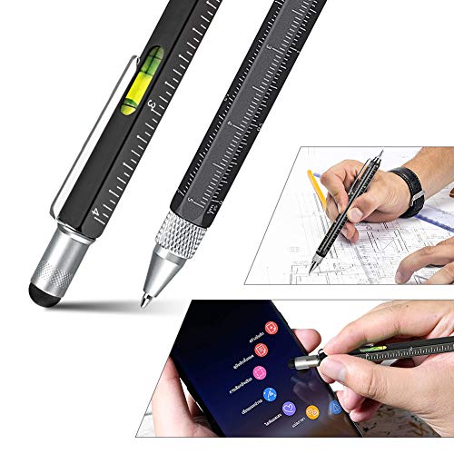 Gift for dad pen Sets for men 6 in 1 pen including : 4 Ballpoint Pen Refills ; a spirit level pen ; a Ruler;a Slot and Cross Head Screwdriver;a Touch Screen Stylus;a Pocket Clip- Into One!