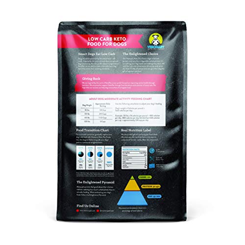 SMART DOGS EAT LOW CARB: Dogs should be powered by fat and protein – not carbs. Our low carb dog food has less than 1g net carbohydrate per cup, making it the healthiest dog food on the market! This natural dog food recipe means more energy, less weight gain, and a happier dog!