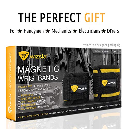 Wizsla Magnetic Wristband for Holding Screws, Tools, Set of 2 Sizes, Cool Tool Gift for Men, Dad, Husband, DIY Handyman…